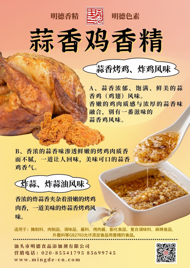 明德蒜香風味系列香精 多級蒜香 覆蓋多場景汕頭市明德食品添加劑有限公司推出的蒜香風味系列香精,覆蓋水溶性、油溶性與粉末等多種形態,既能呈現新鮮大蒜、炸蒜、熟蒜油等不同調性,又兼顧耐溫與留香表現,適用于醬料、肉制品、調味品、休閑零食及復合調味等B端應用。以下為本系列核心單品與香氣描述